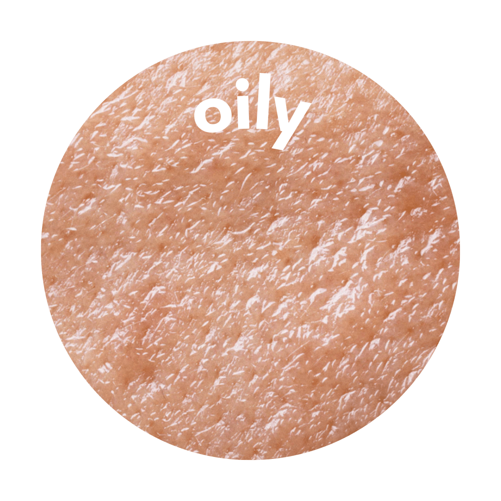 Oily skin is shown through its shiny appearance. The skin overproduces sebum, which are your natural oils. Having these oils tend to cause larger pores and makes your skin prone to having acne and/or blackheads.