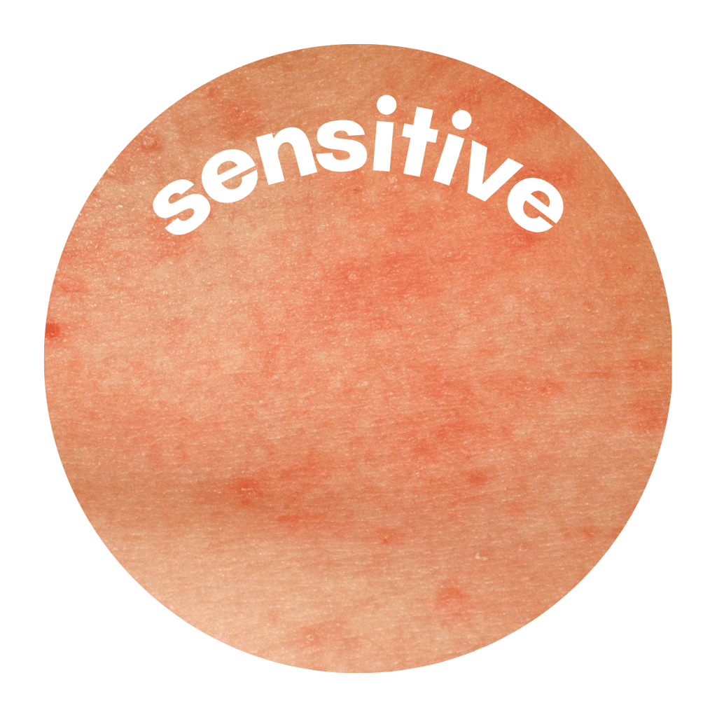 Sensitive skin gets easily irritated and has a broken skin barrier. You’ll feel itchiness, burning, and/or a stinging sensations when applying products and your skin will begin to turn red. This can also be noticed within acne prone skin.