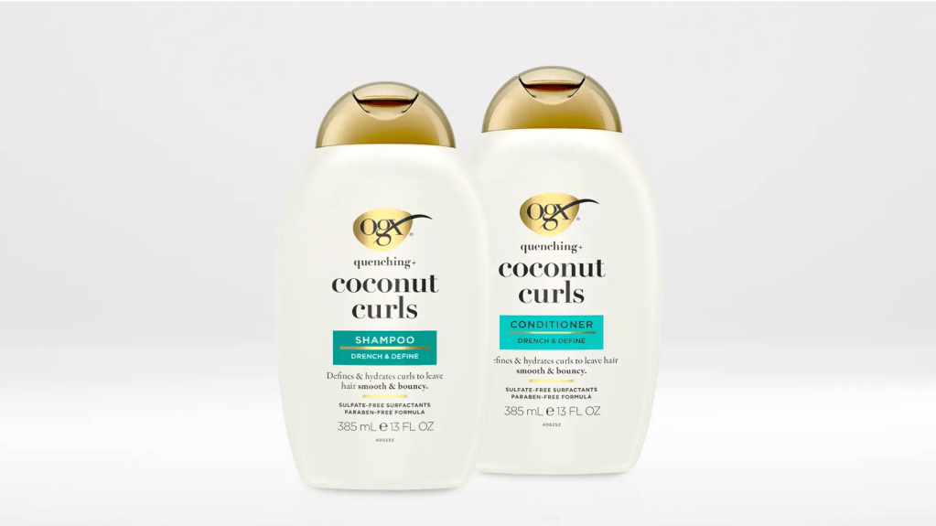 - OGX Coconut Curls Shampoo + Conditioner (one of my personal favorites)